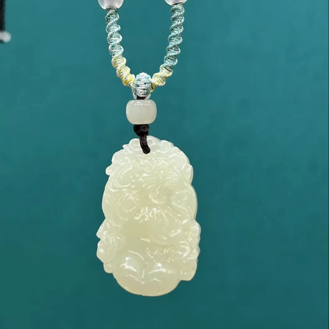 Natural Nephrite Twelve Chinese Horoscope Jade Tiger Guardian Pendant Necklace Rope Chain Trendy Gift